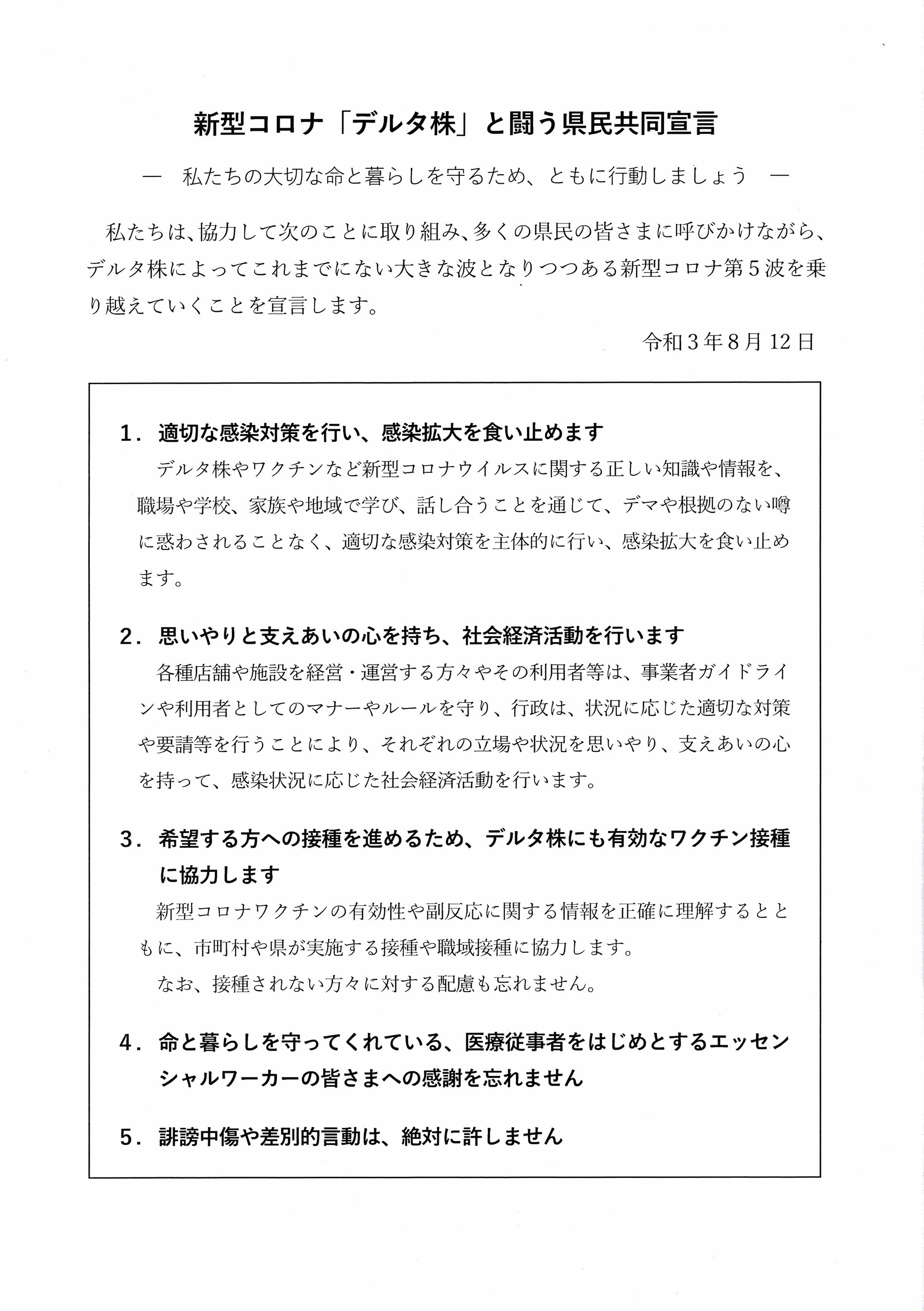 長野県では「新型コロナ『デルタ株』と闘う県民共同宣言」を発出しました。