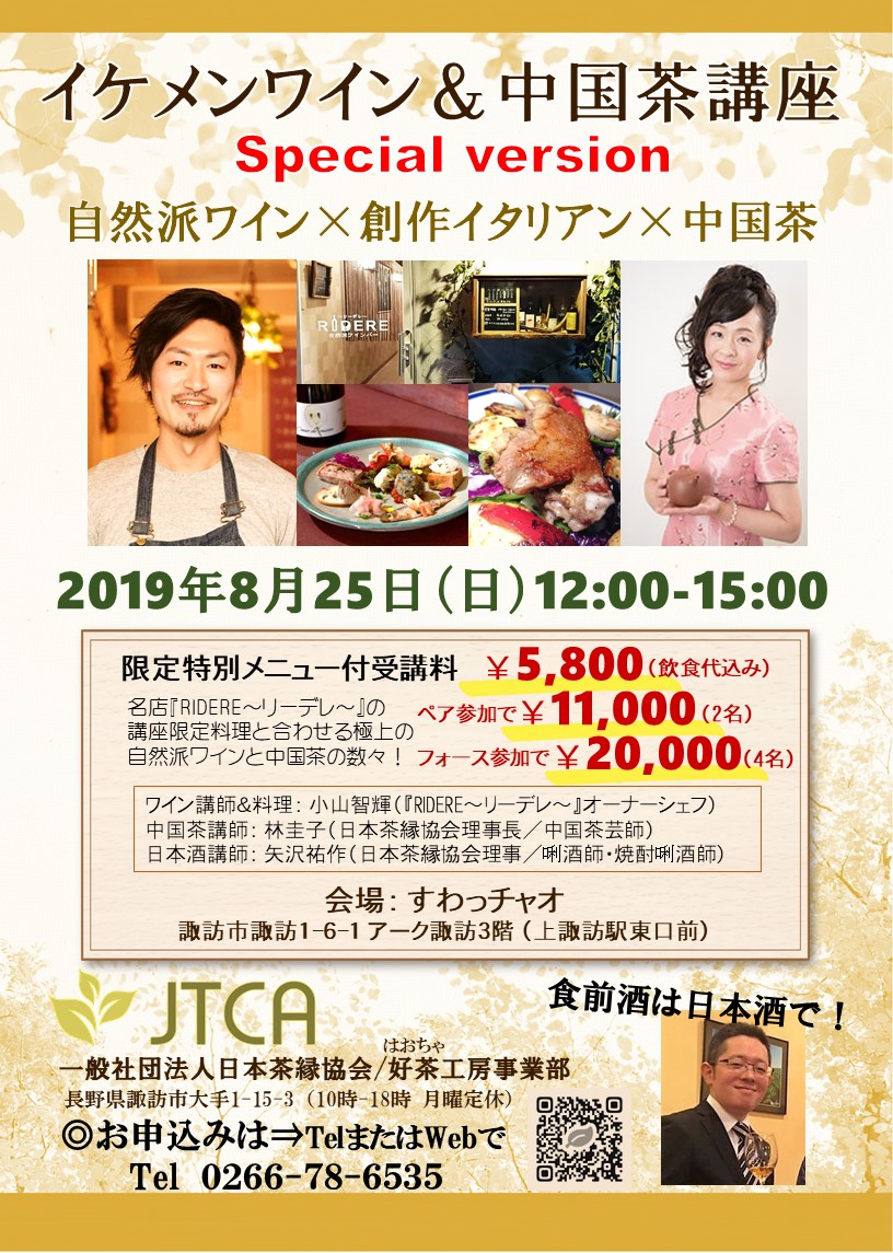 恒例のワイン&中国茶講座、2019年夏開催決定致しました!