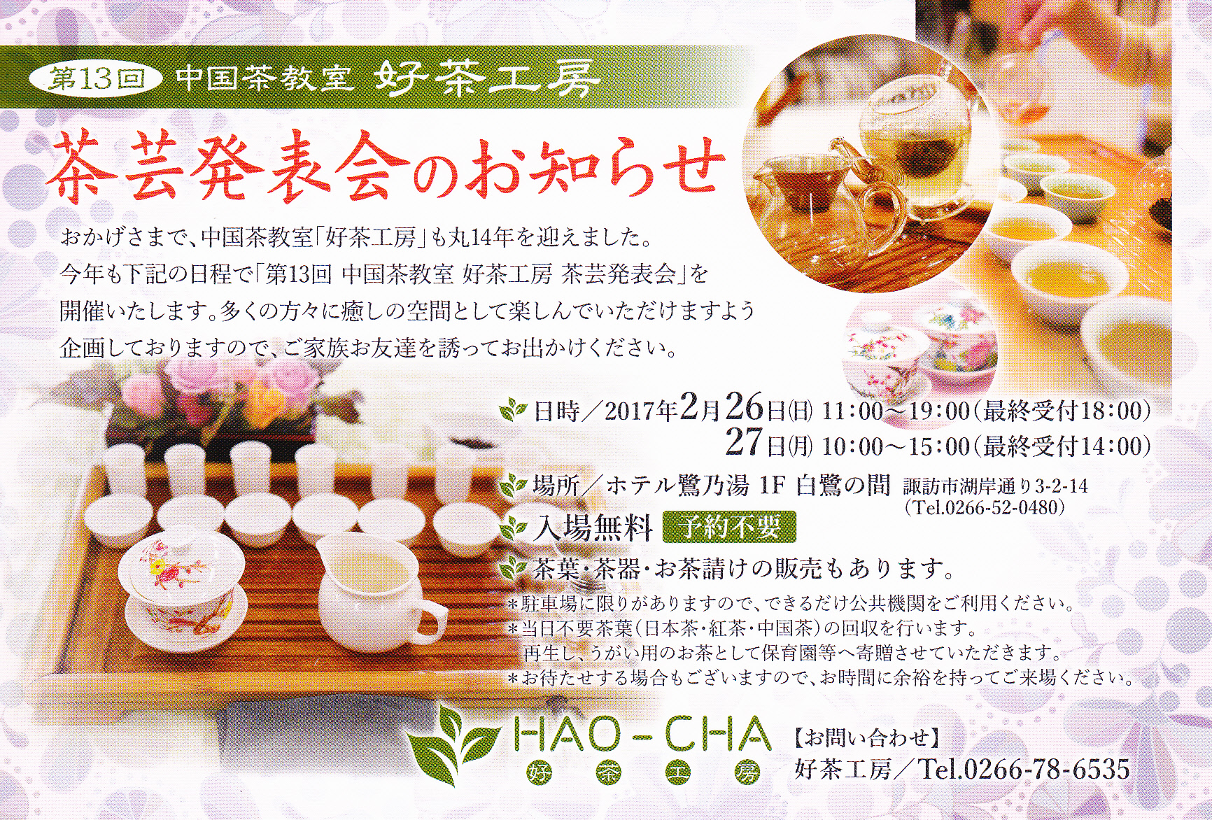 第13回茶芸発表会開催のお知らせ