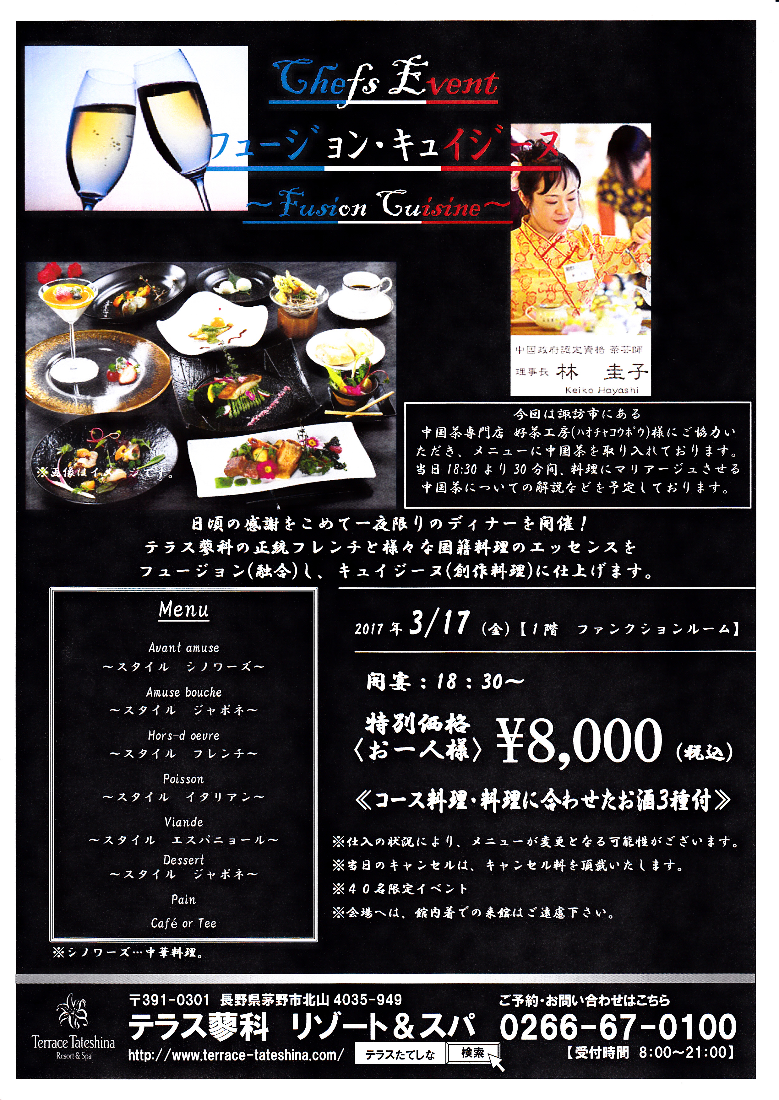 お申込み・お問合せ:0266-67-0100(テラス蓼科リゾート&スパ)