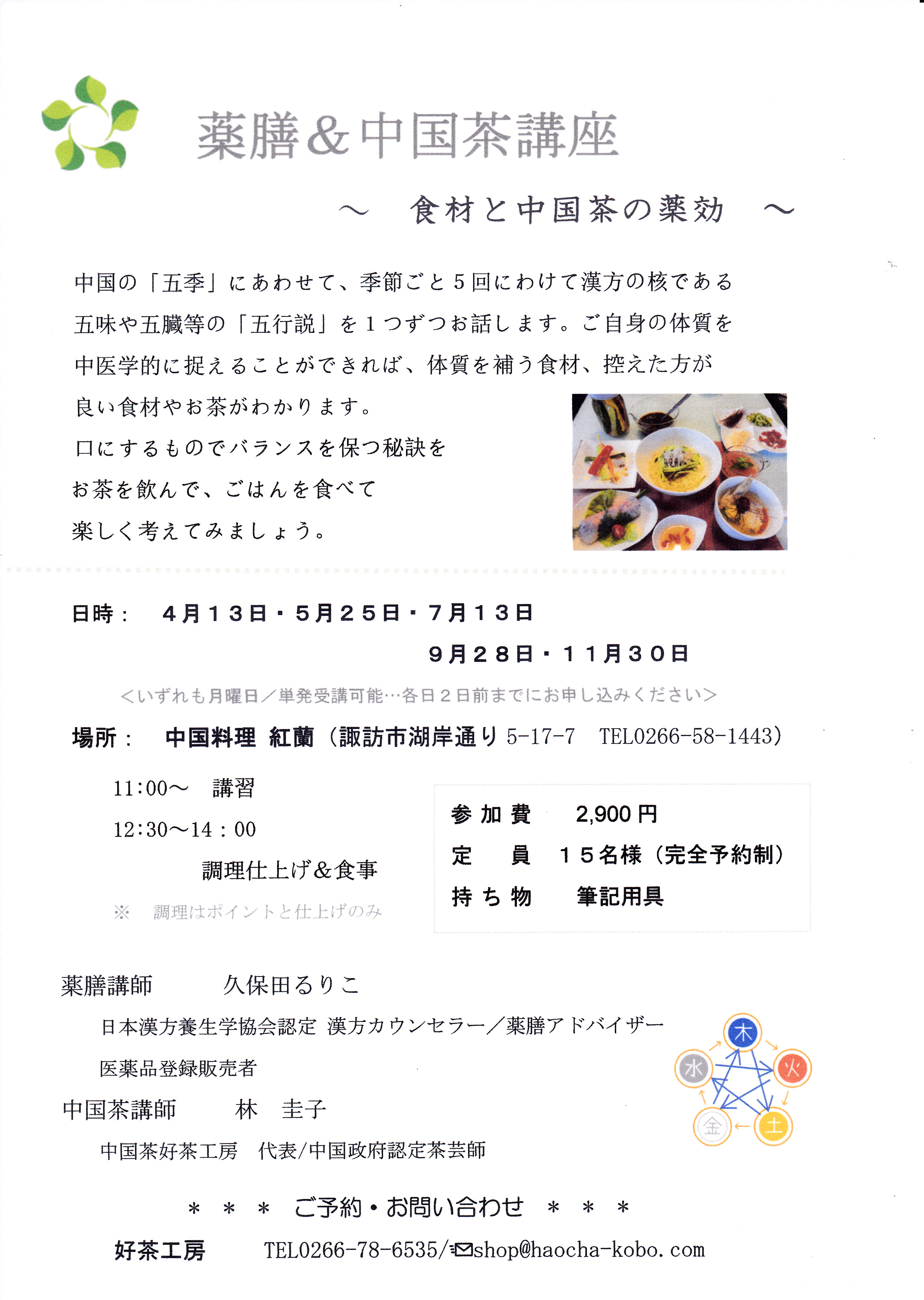 薬膳&中国茶講座(参加費2,900円・ランチ付)