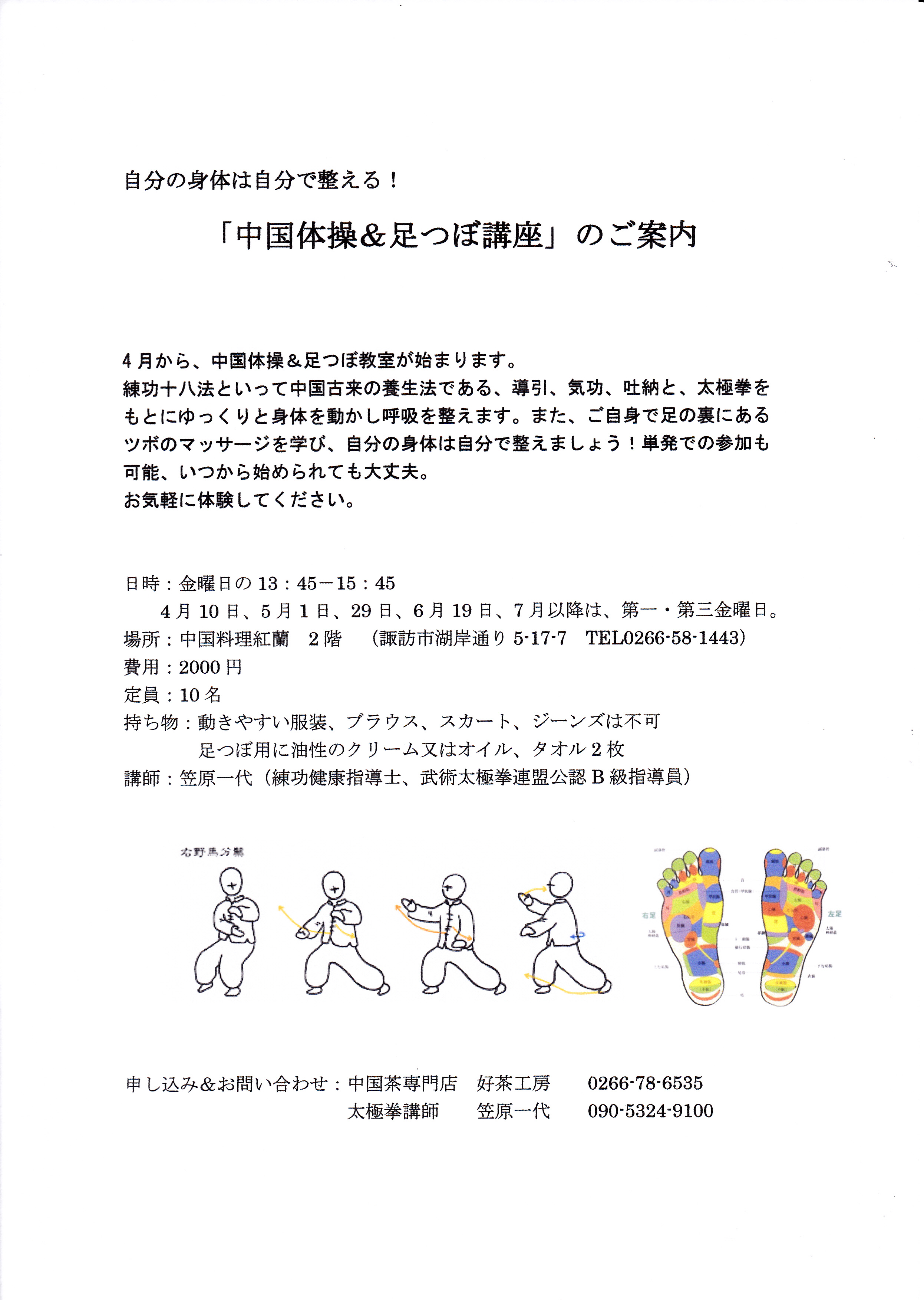【募集中】中国体操&足ツボ講座を開催します!