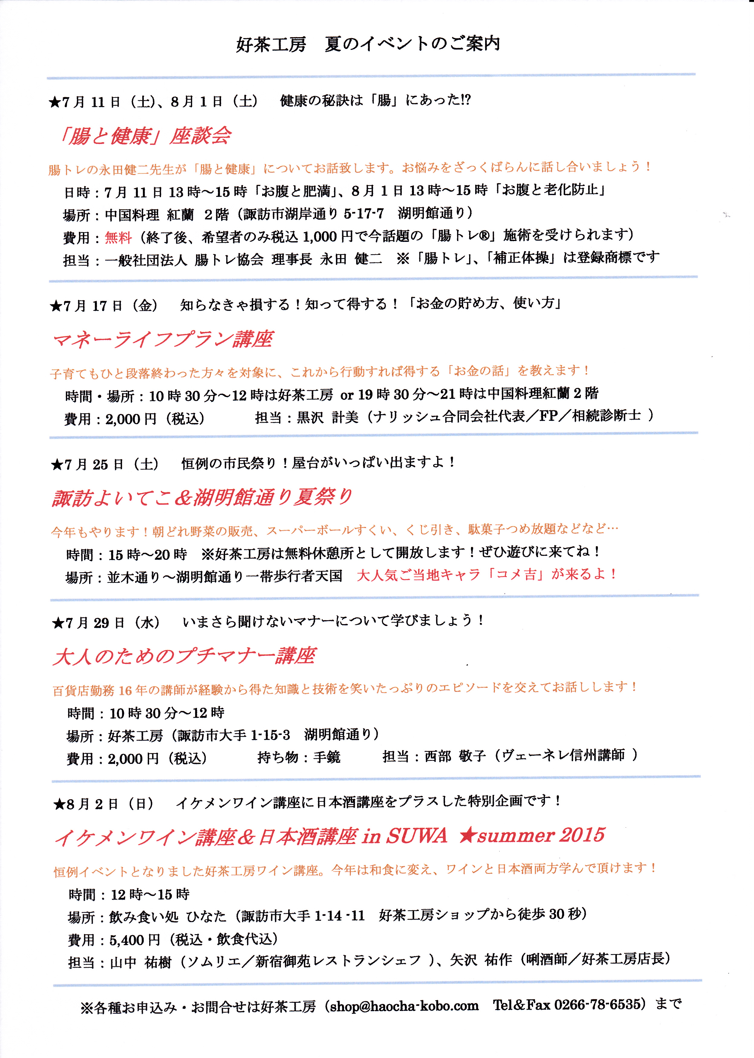 好茶工房では7月以降も様々なイベントを企画しております。