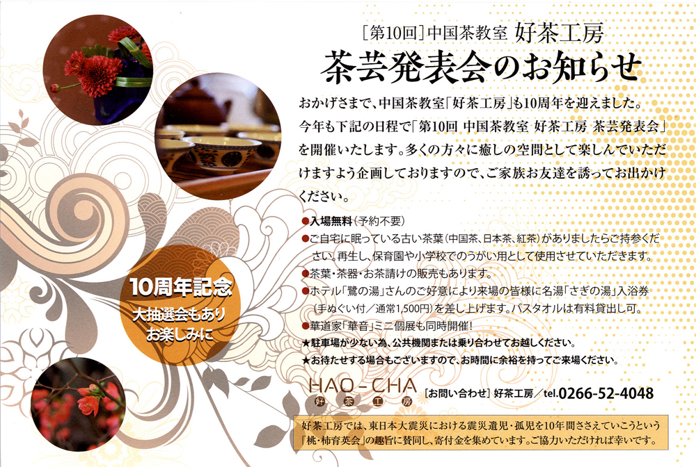 TEL 0266-52-4048 または haocha@po22.lcv.ne.jp まで。